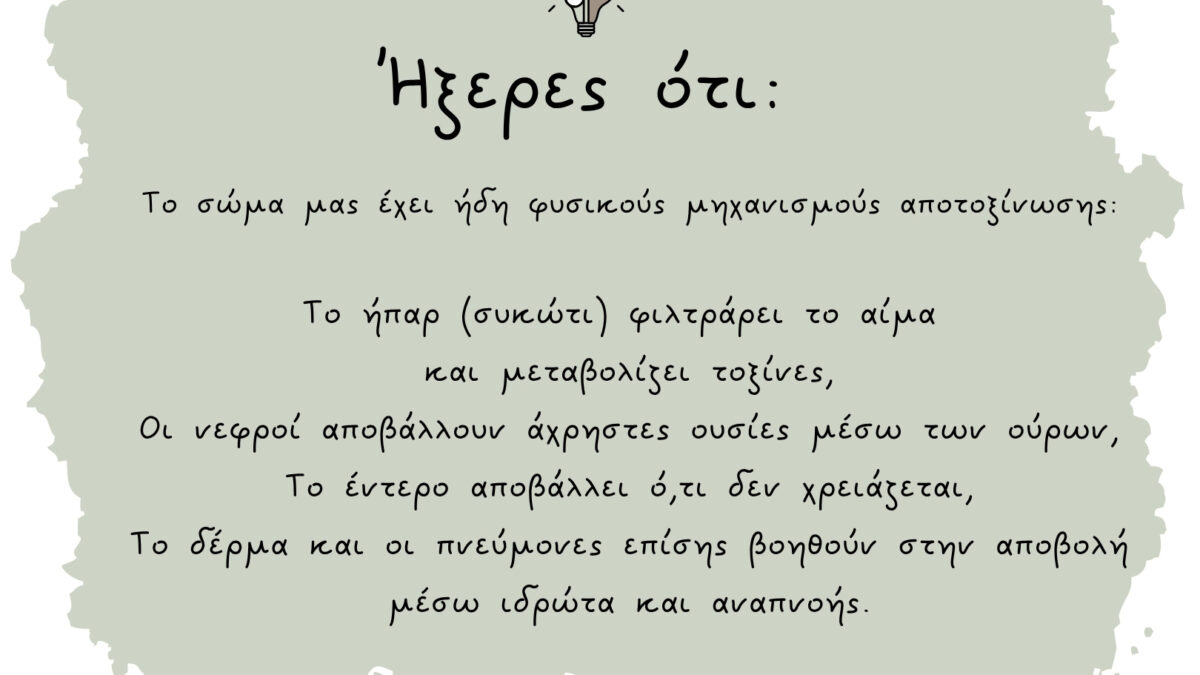 Το σώμα μας έχει ήδη φυσικούς μηχανισμούς αποτοξίνωσης: